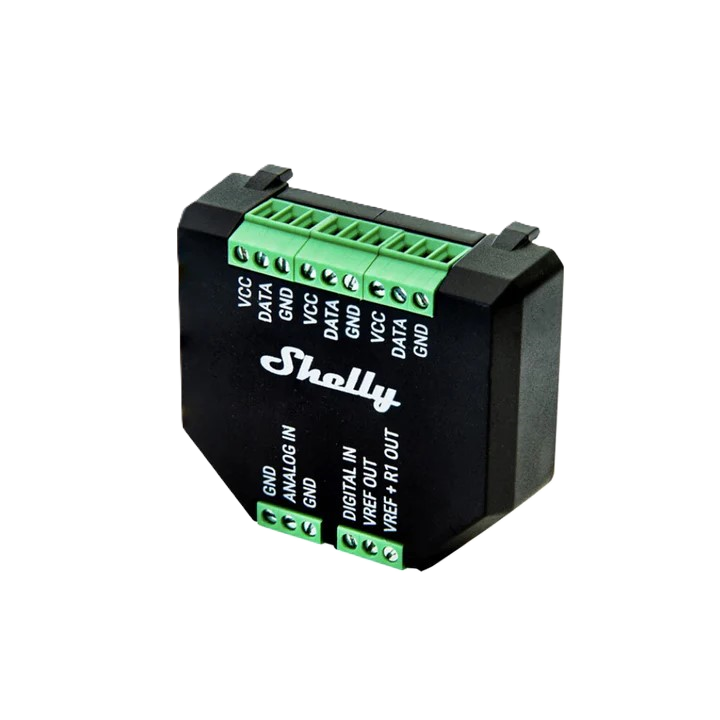 Das Shelly Plus AddOn ist eine Erweiterungsplatine für bestimmte Shelly‑Modelle (z. B. Shelly Plus 1 oder 1PM). Sie ergänzt diese um zusätzliche Eingänge wie analoge Sensoren, Temperatursensoren (DS18B20) oder Schalter. Das AddOn selbst funktioniert nicht eigenständig, sondern erweitert die Funktionen des Hauptgeräts.